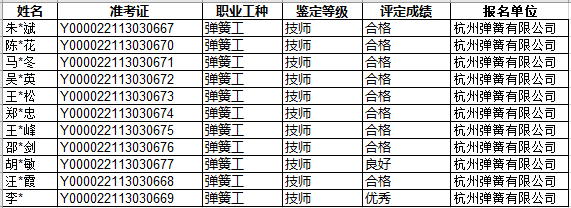 2022年12月10日-2023年2月25日,我司進行了彈簧制作工二級、三級認定,現將通過認定的名單予以公示(詳見下圖),公示期從2023年3月14日-3月21日,監督電話:0571-86260220,李老師、種老師。 ...